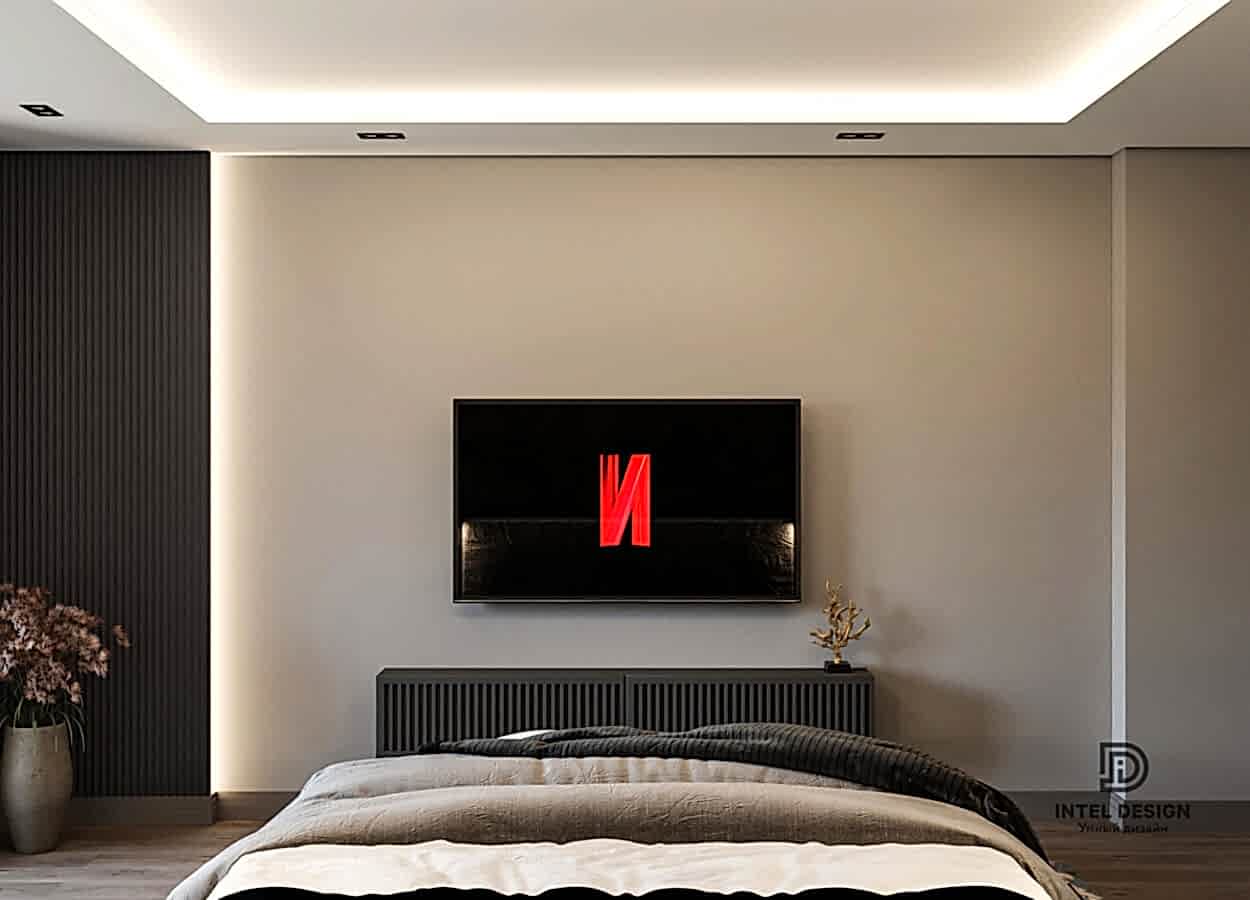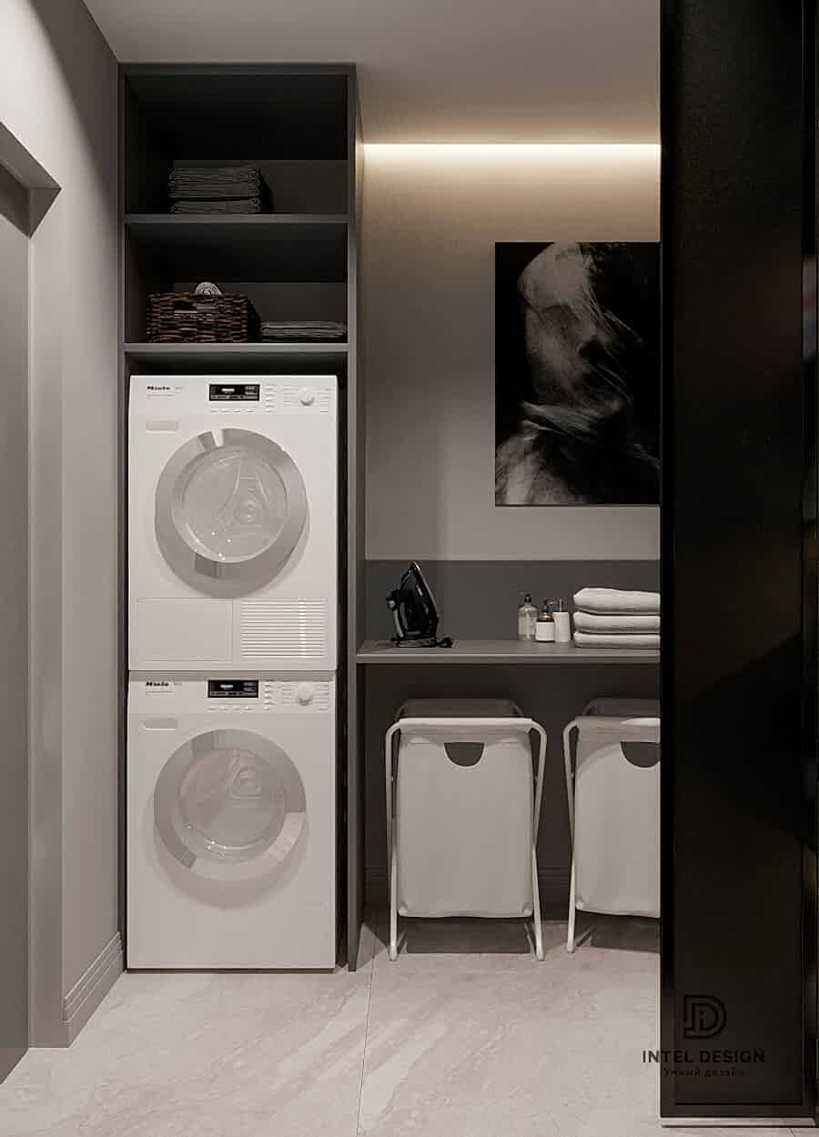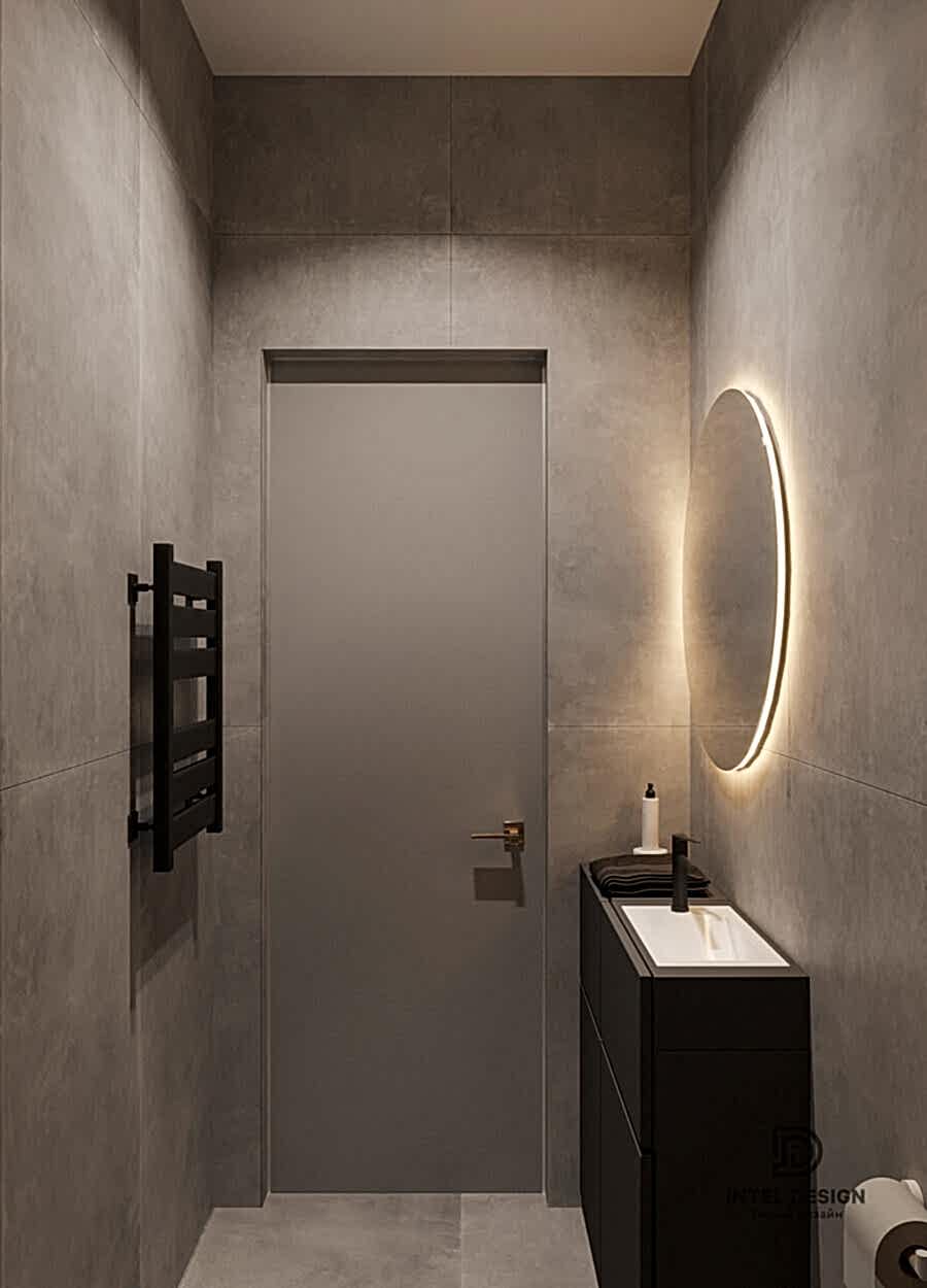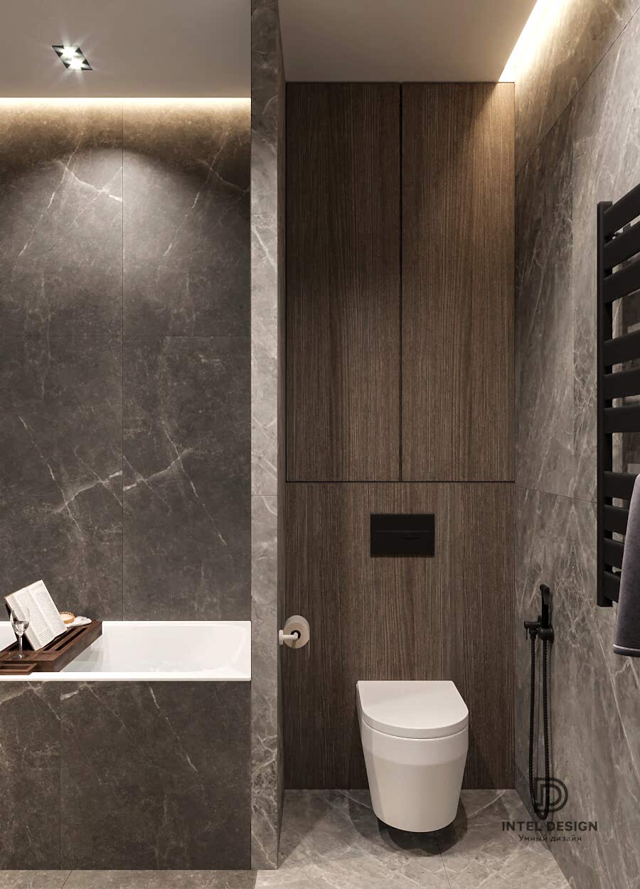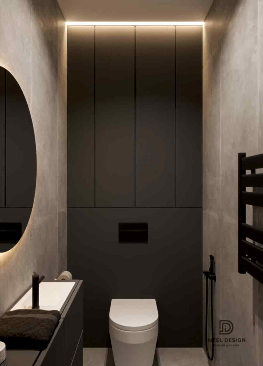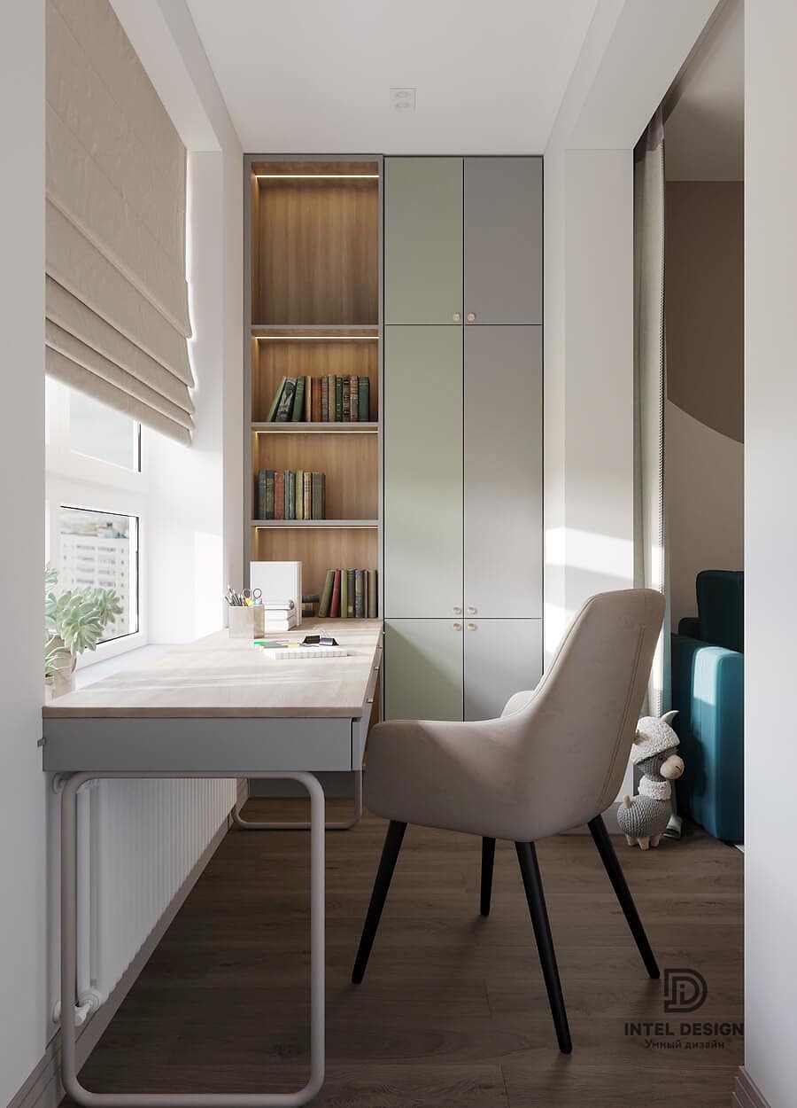 В данном проекте удалось интересно решить вопросы зонирования пространства, как в спальнях, так и в общем Pin-Up студии. В дизайне квартиры использовали сочетание светлых тонов с более темными, фактурную декоративную штукатурку.