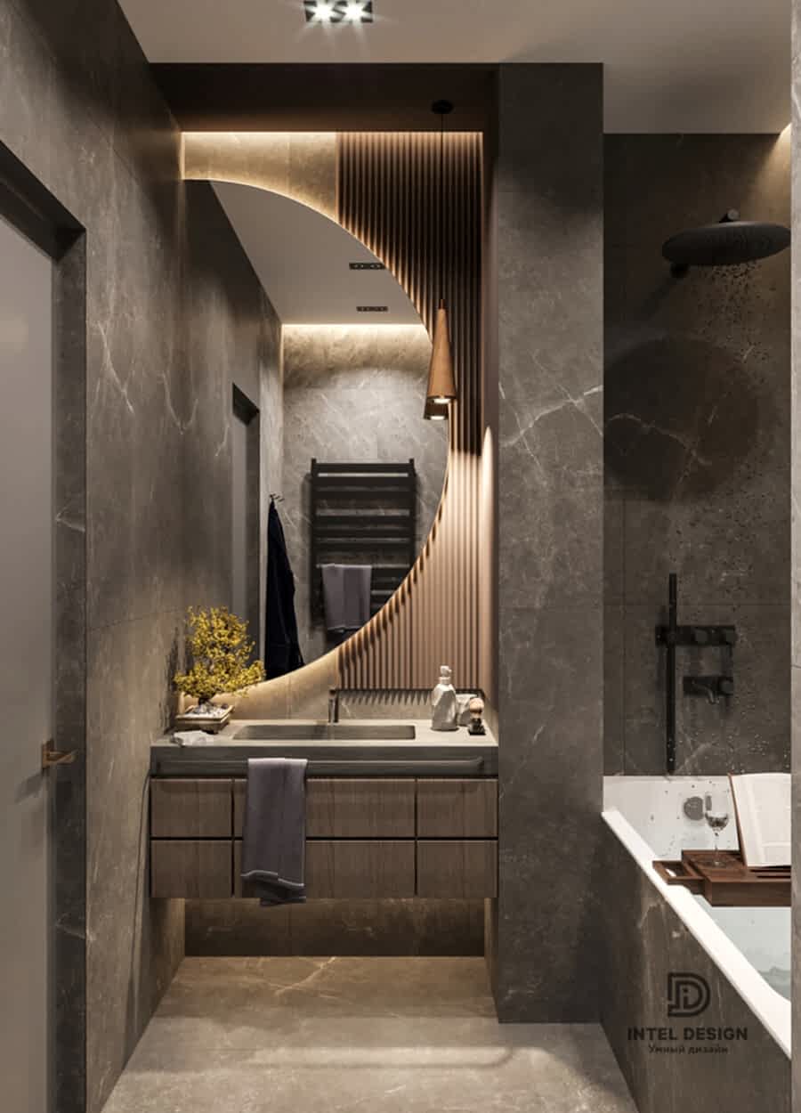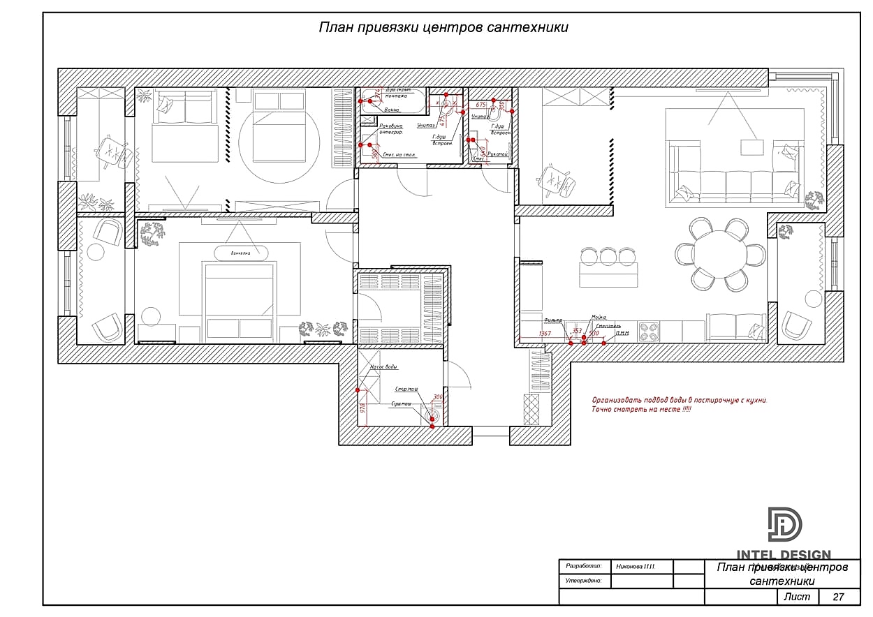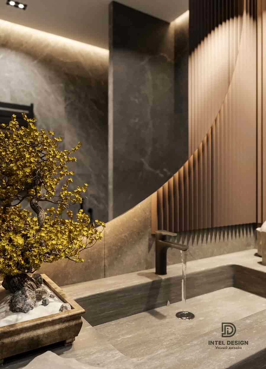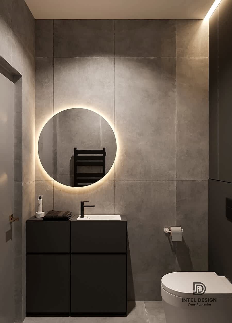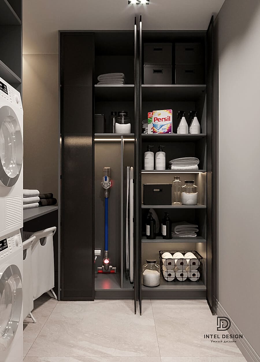 В данном проекте удалось интересно решить вопросы зонирования пространства, как в спальнях, так и в общем Pin-Up студии. В дизайне квартиры использовали сочетание светлых тонов с более темными, фактурную декоративную штукатурку.