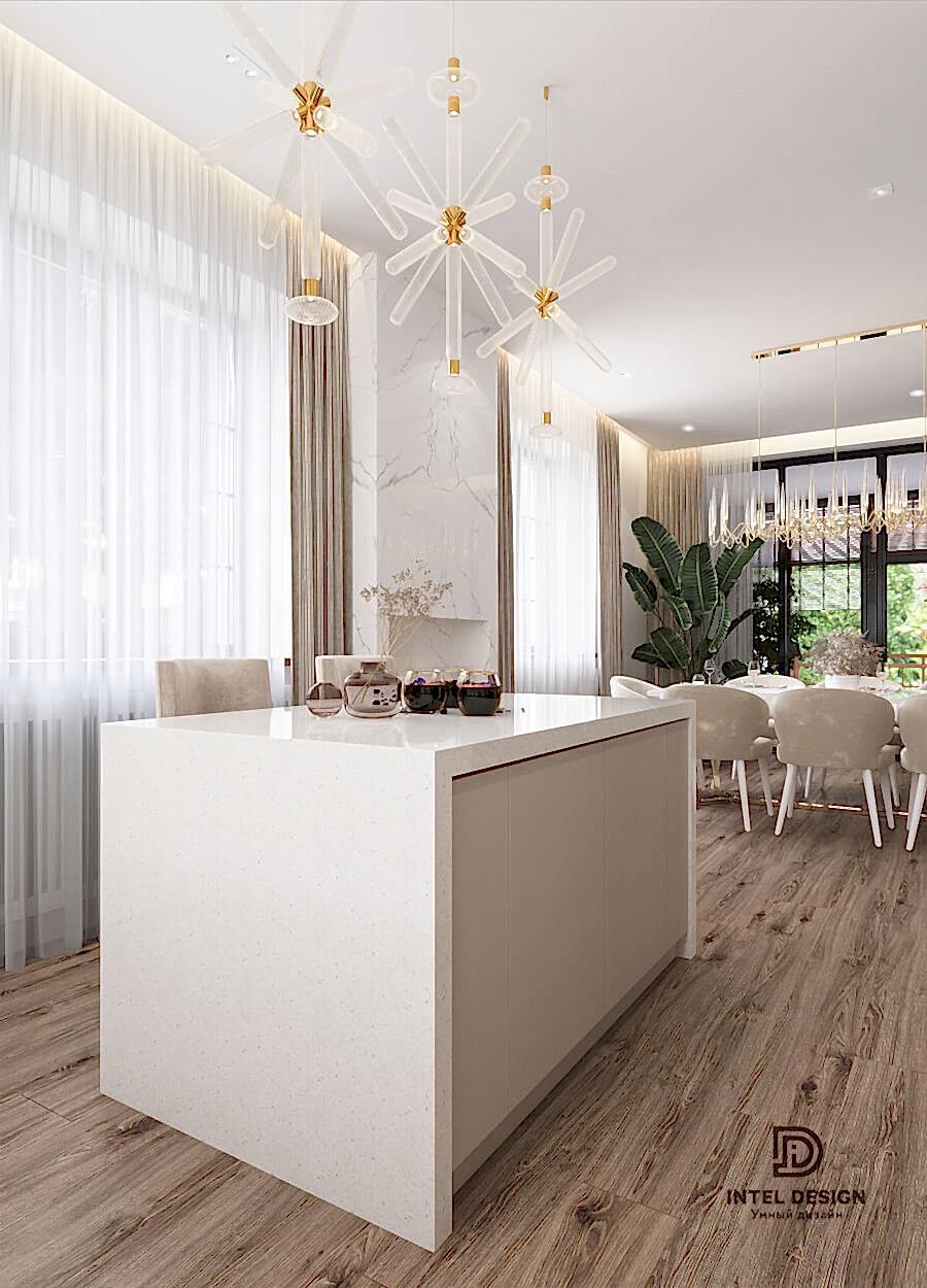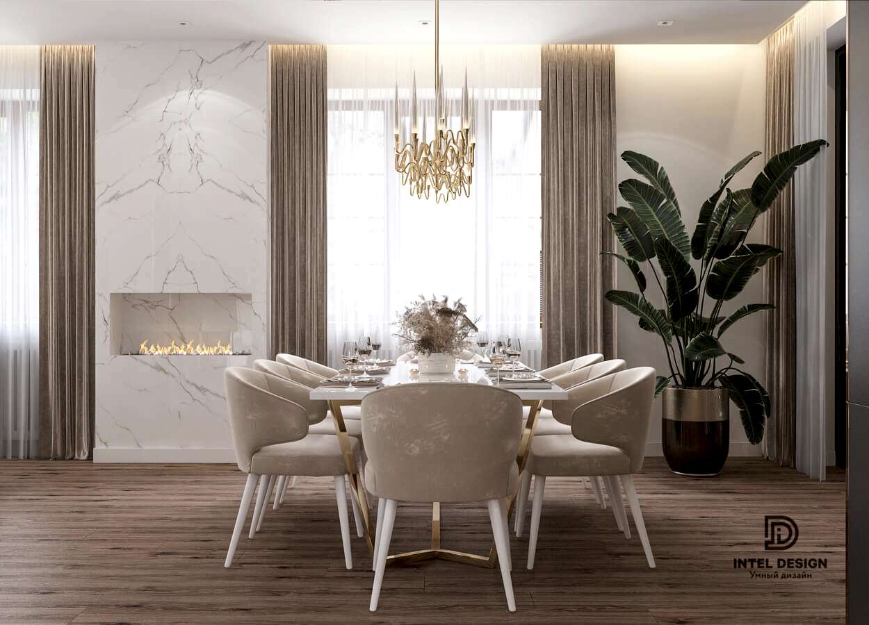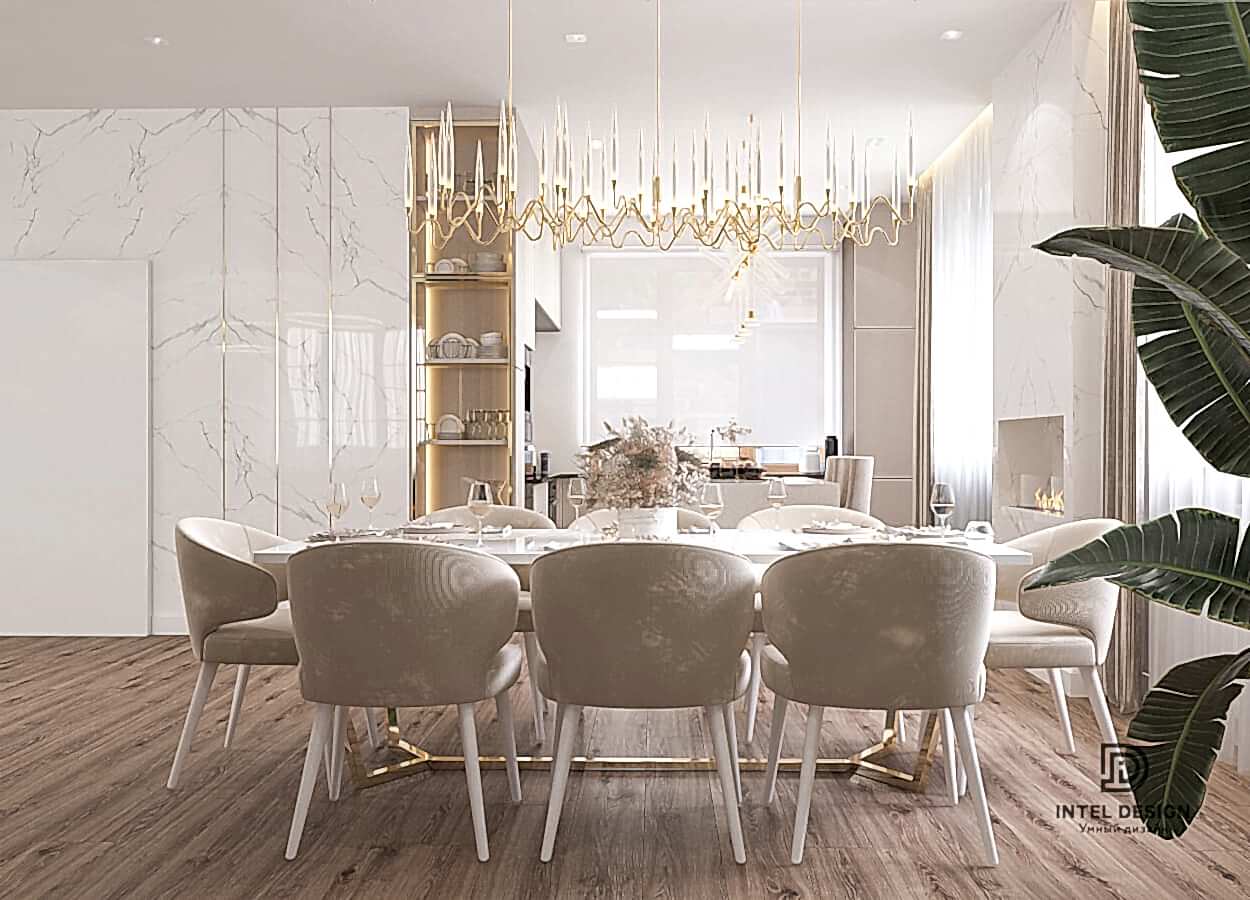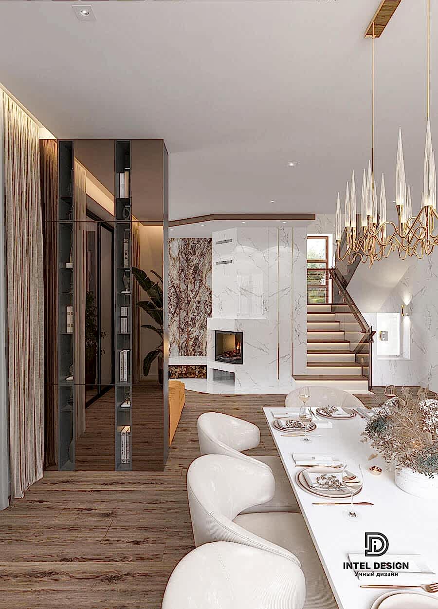 Супруга хотела внести в интерьер нашего нового дома изысканности и роскоши. но чтобы это смотрелось легко и современно. Дизайнер предложил внести элементы ар-деко и когда на визуализациях мы Pin-Up наш будущий интерьер, то поняли, что это именно то, что мы и хотели.