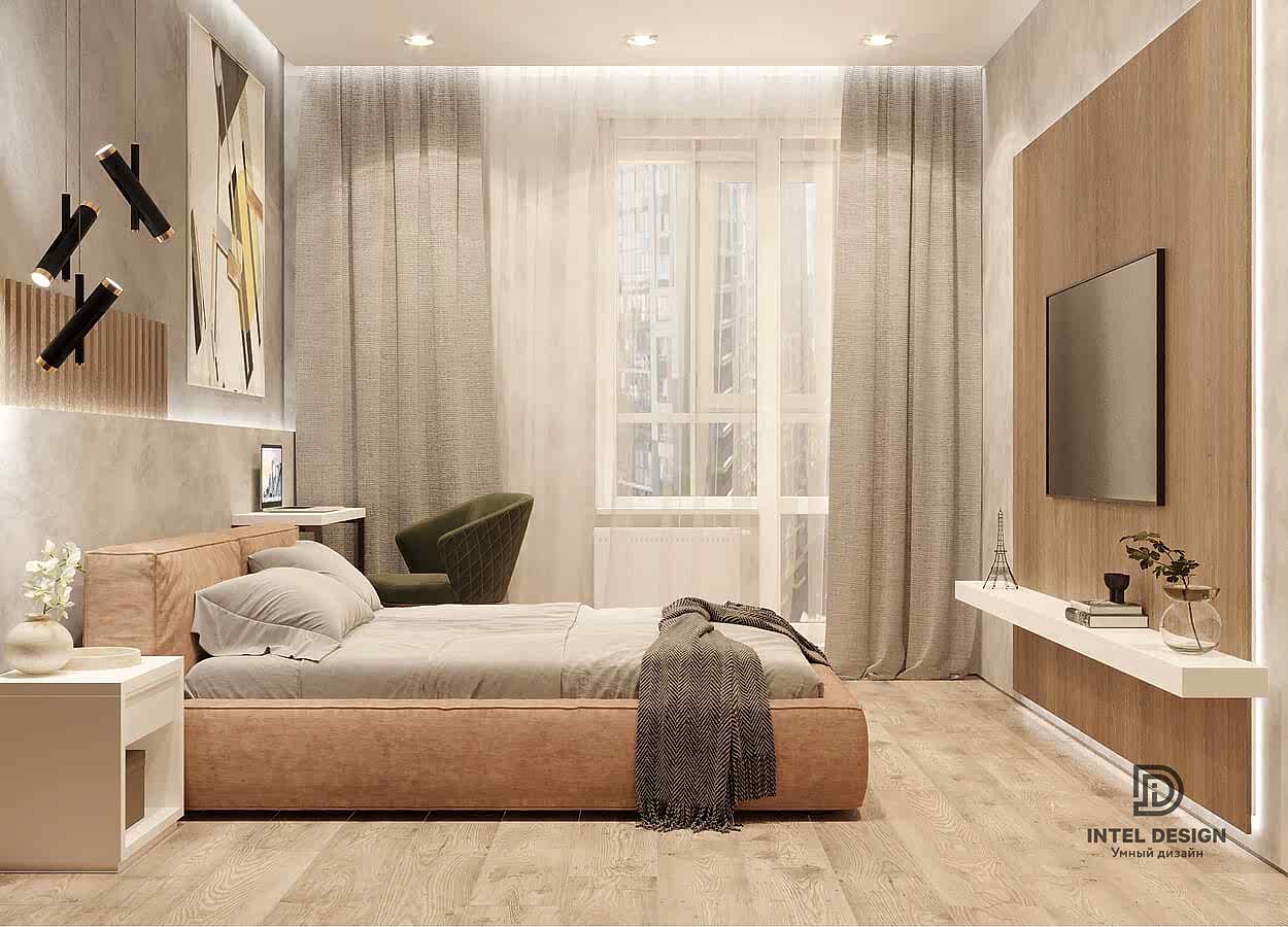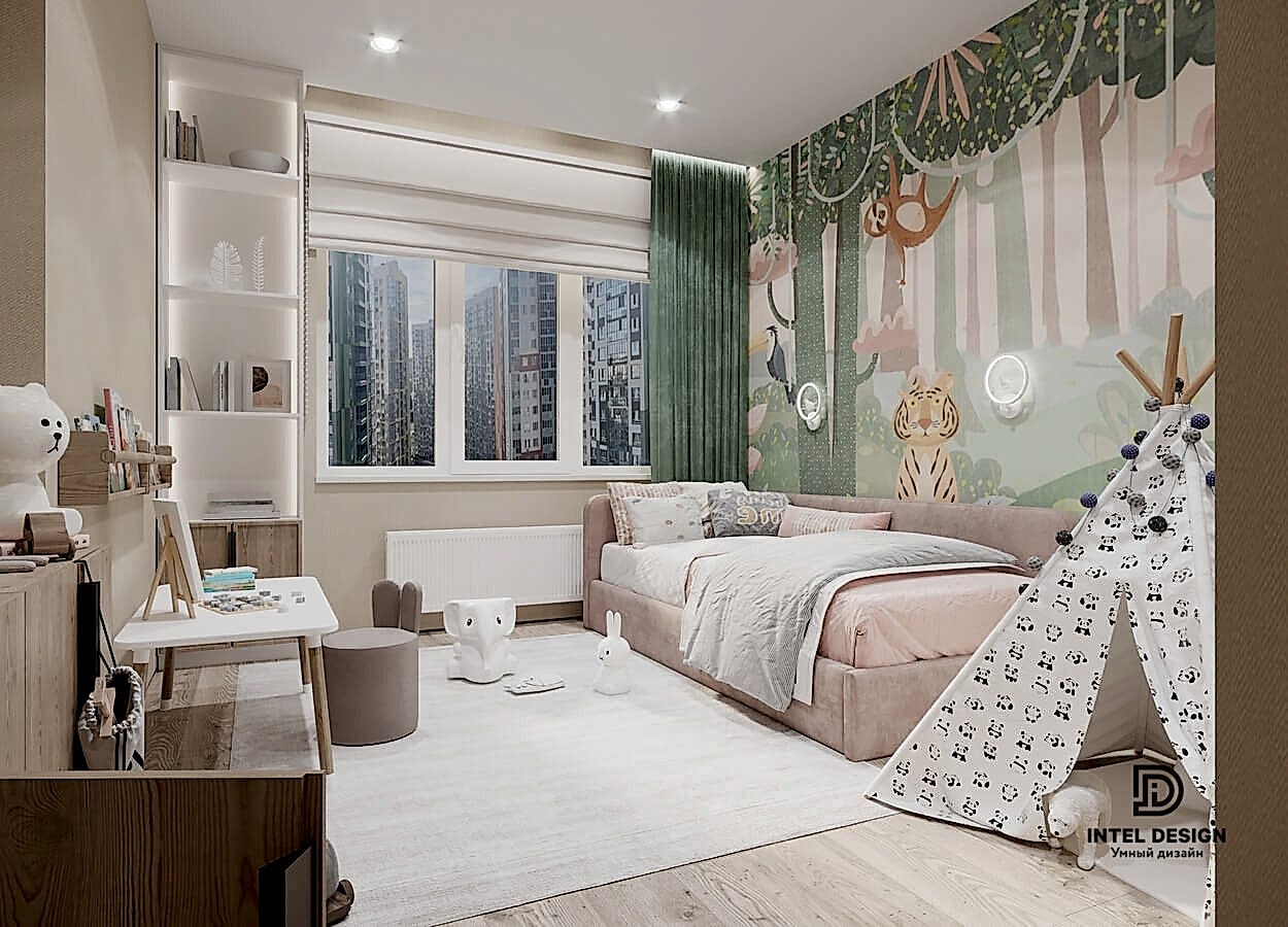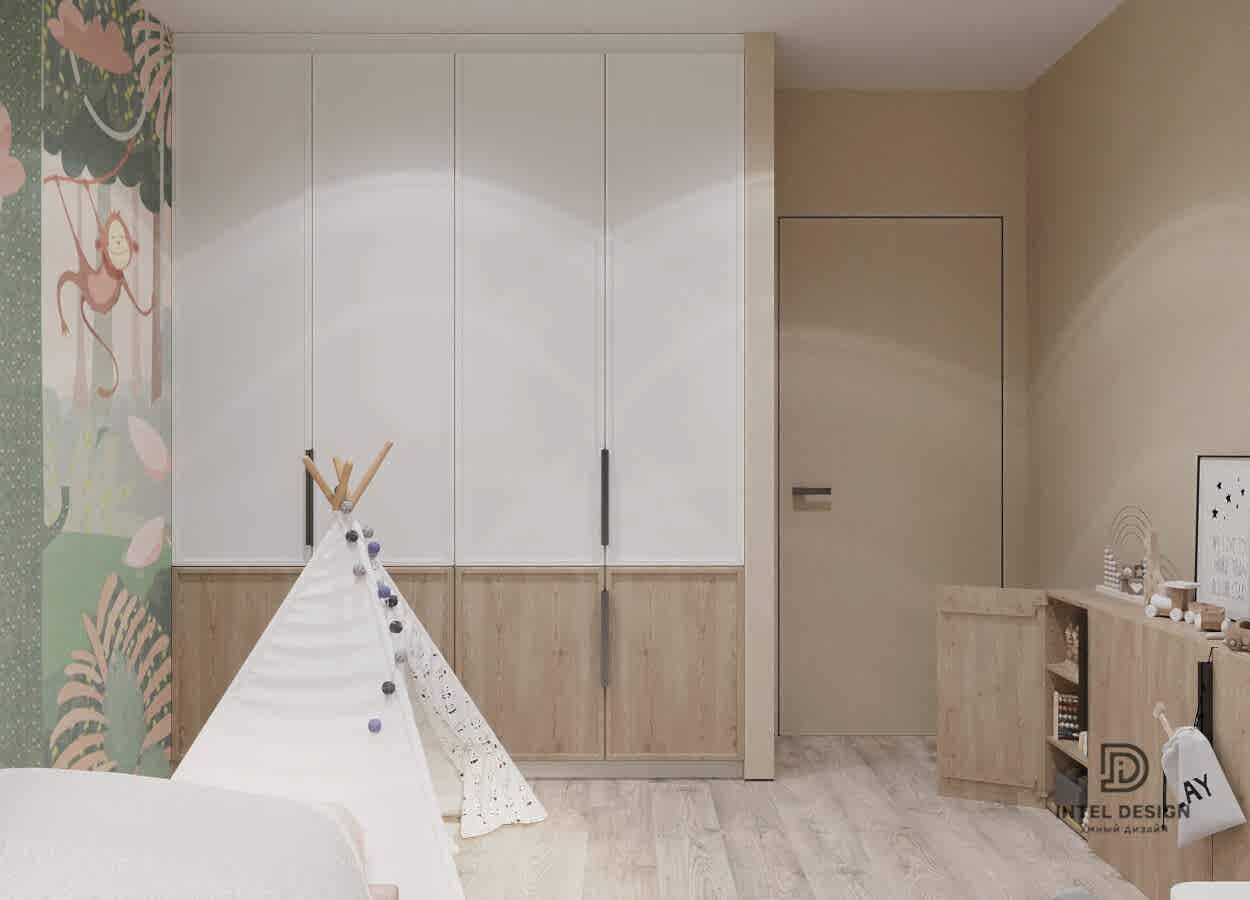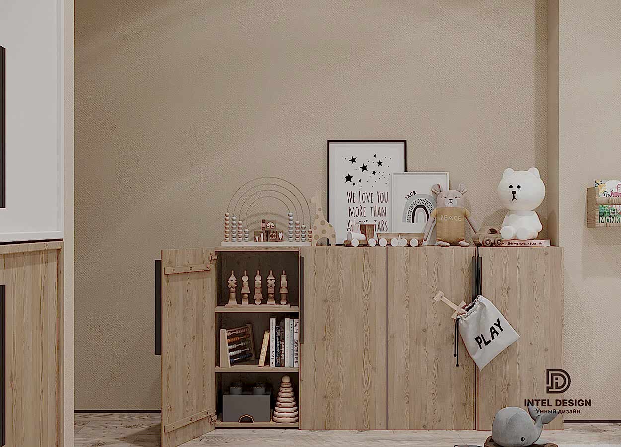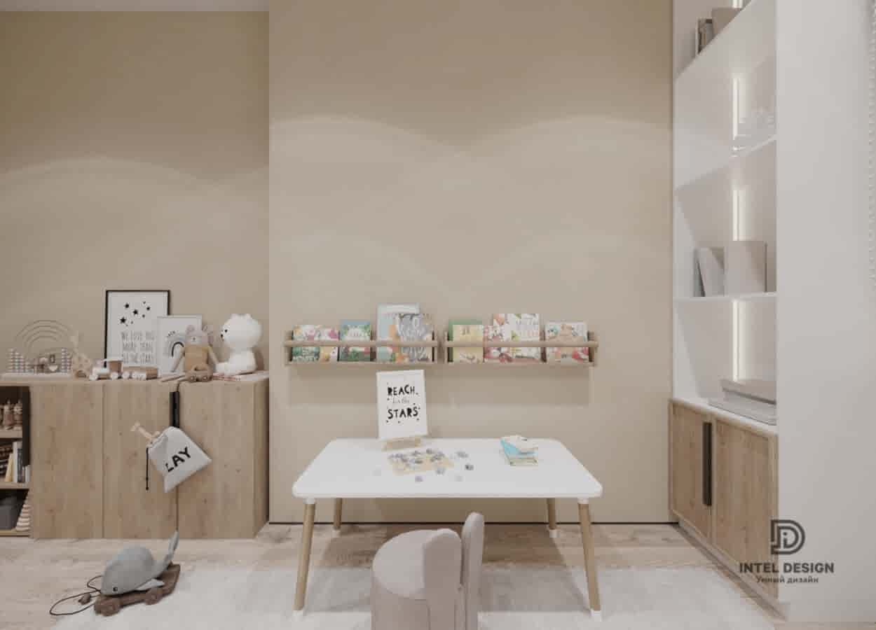 По запросу молодой семьи, для кого создавали данный проект, интерьер получился максимально мягким и светлым, а обильно использование Pin-Up материалов сделали его максимально уютным.