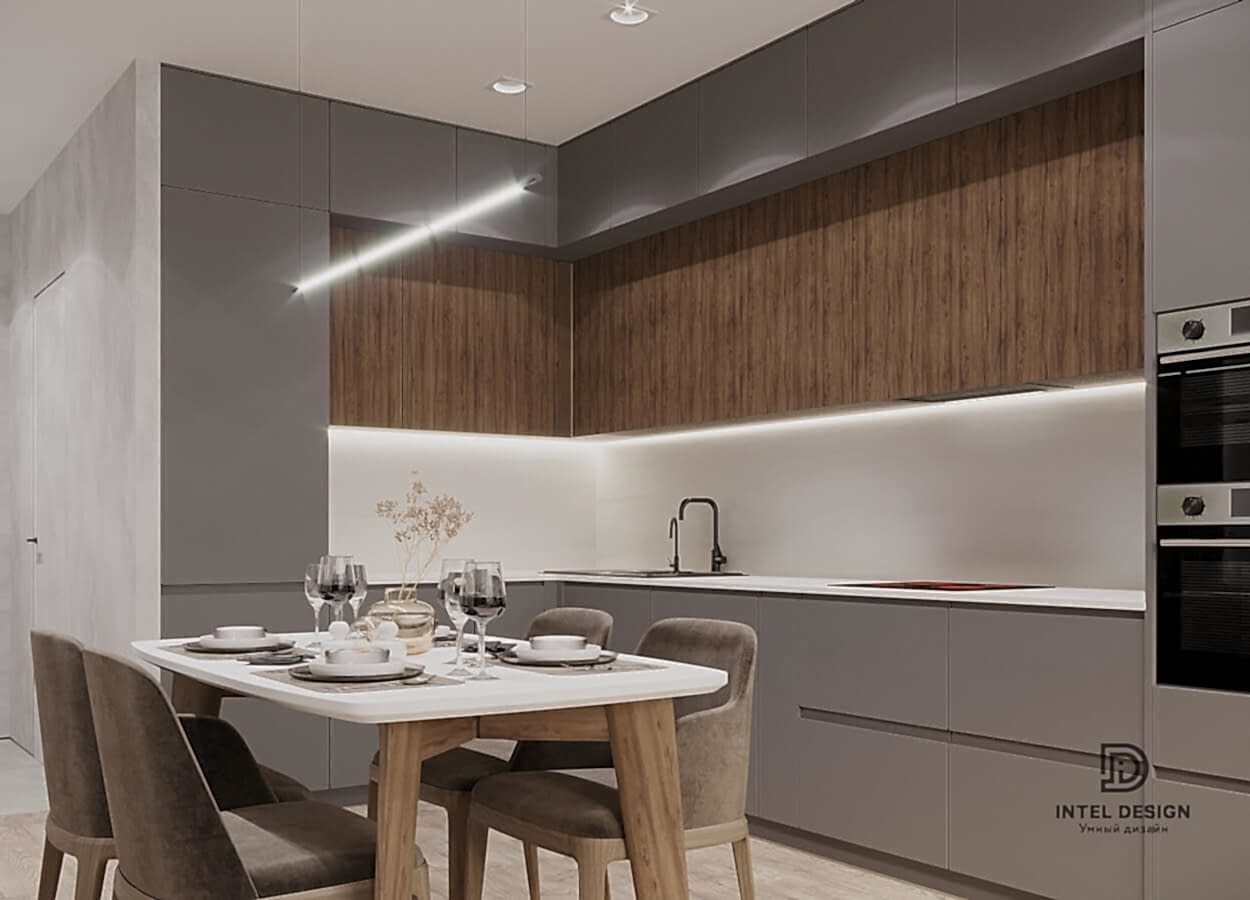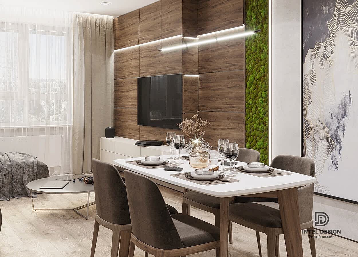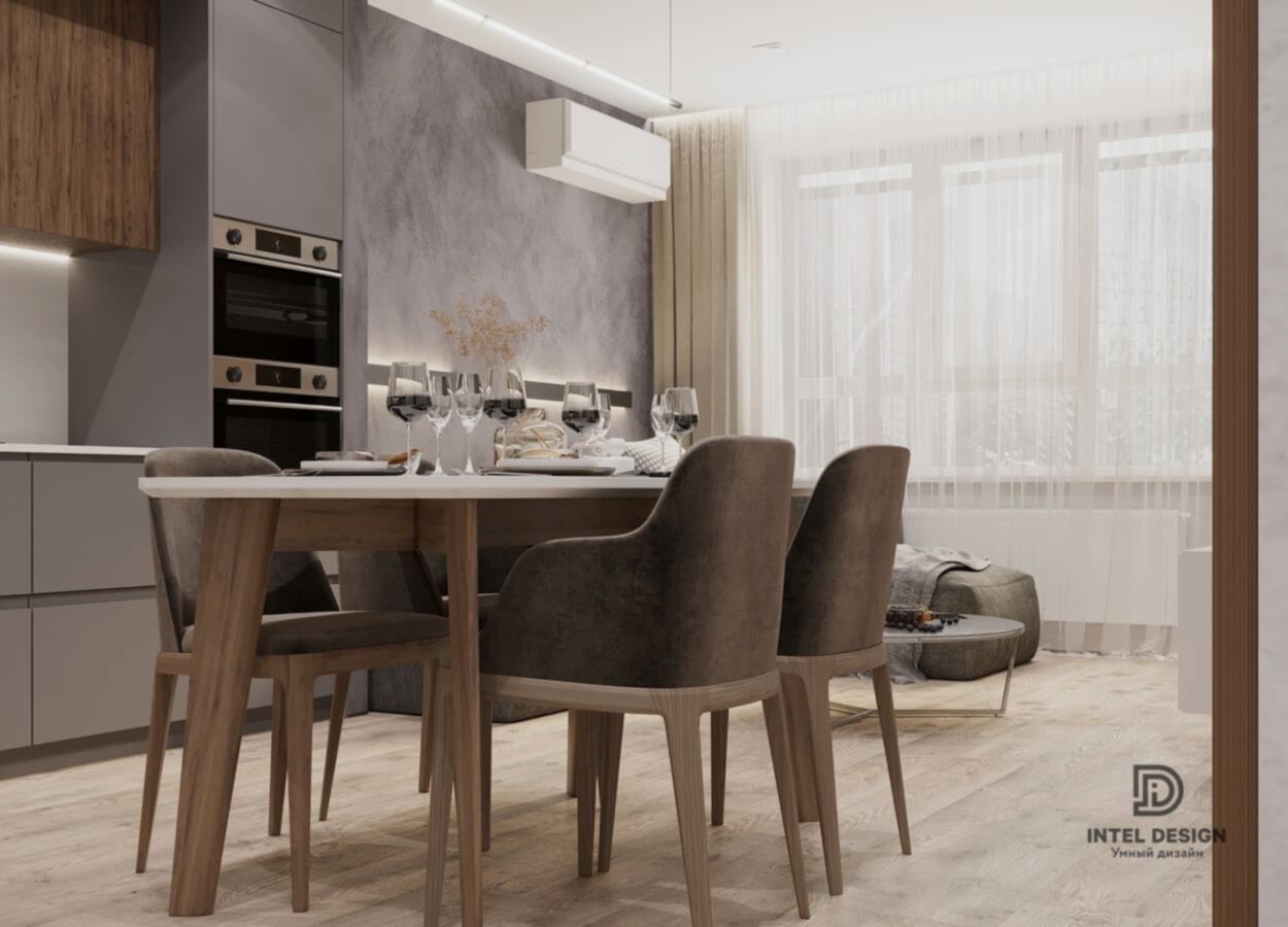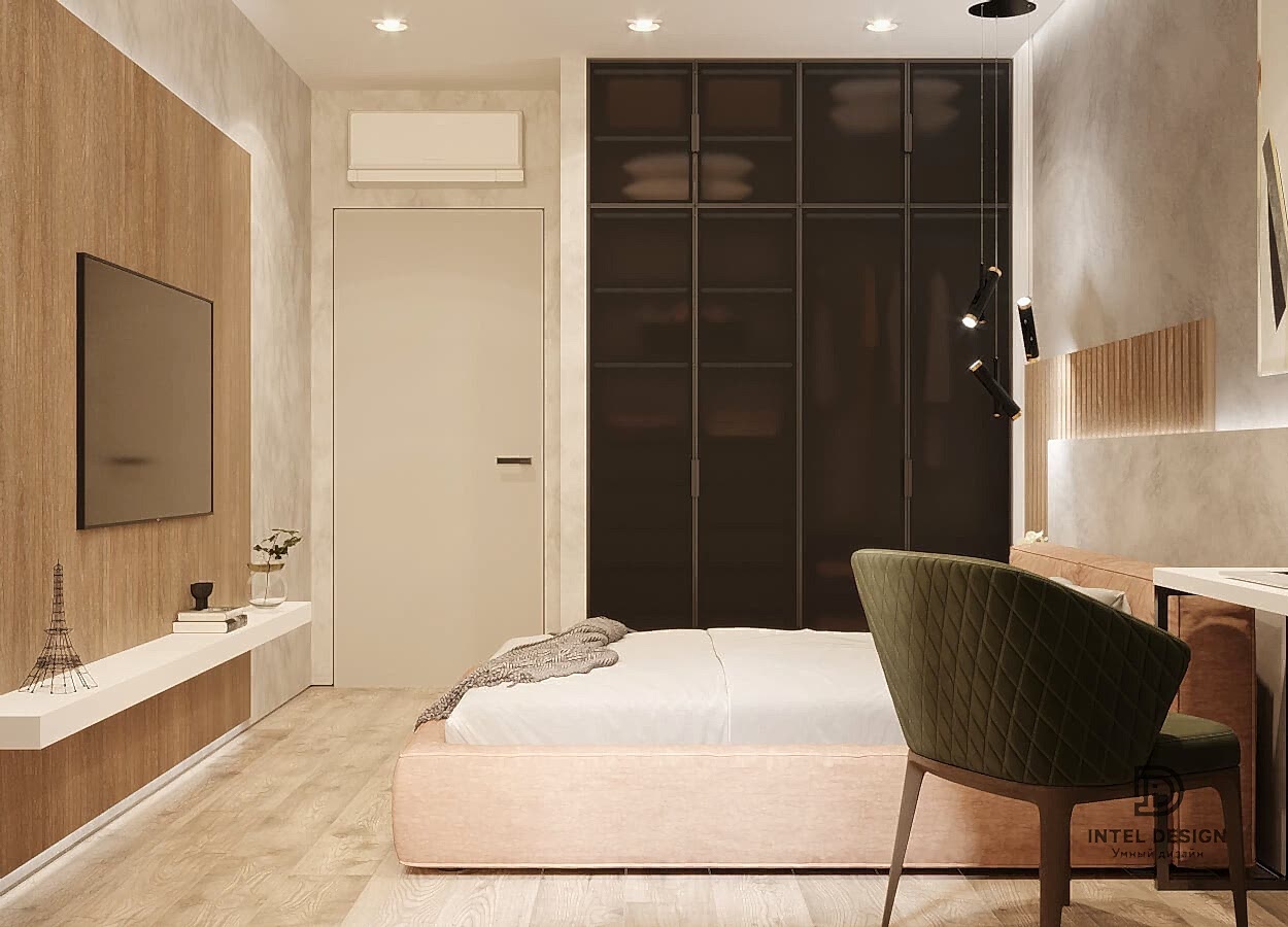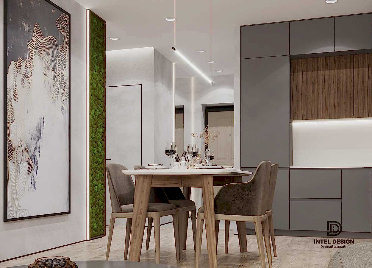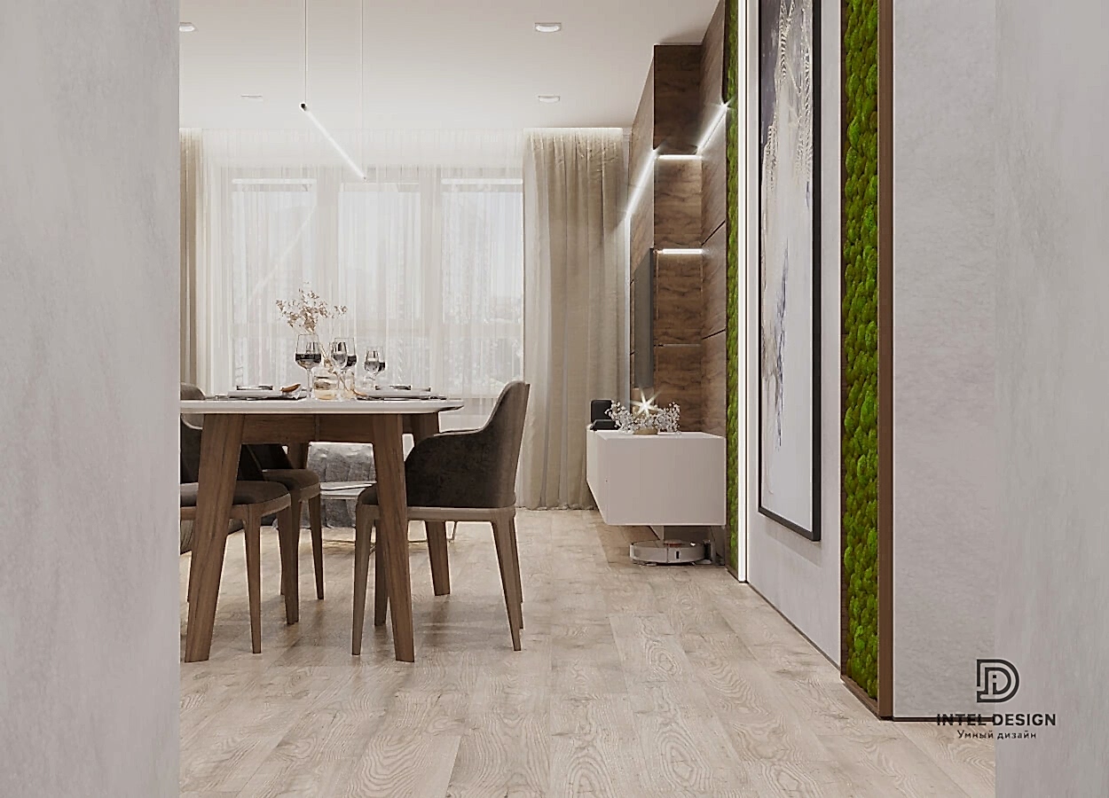 По запросу молодой семьи, для кого создавали данный проект, интерьер получился максимально мягким и светлым, а обильно использование Pin-Up материалов сделали его максимально уютным.